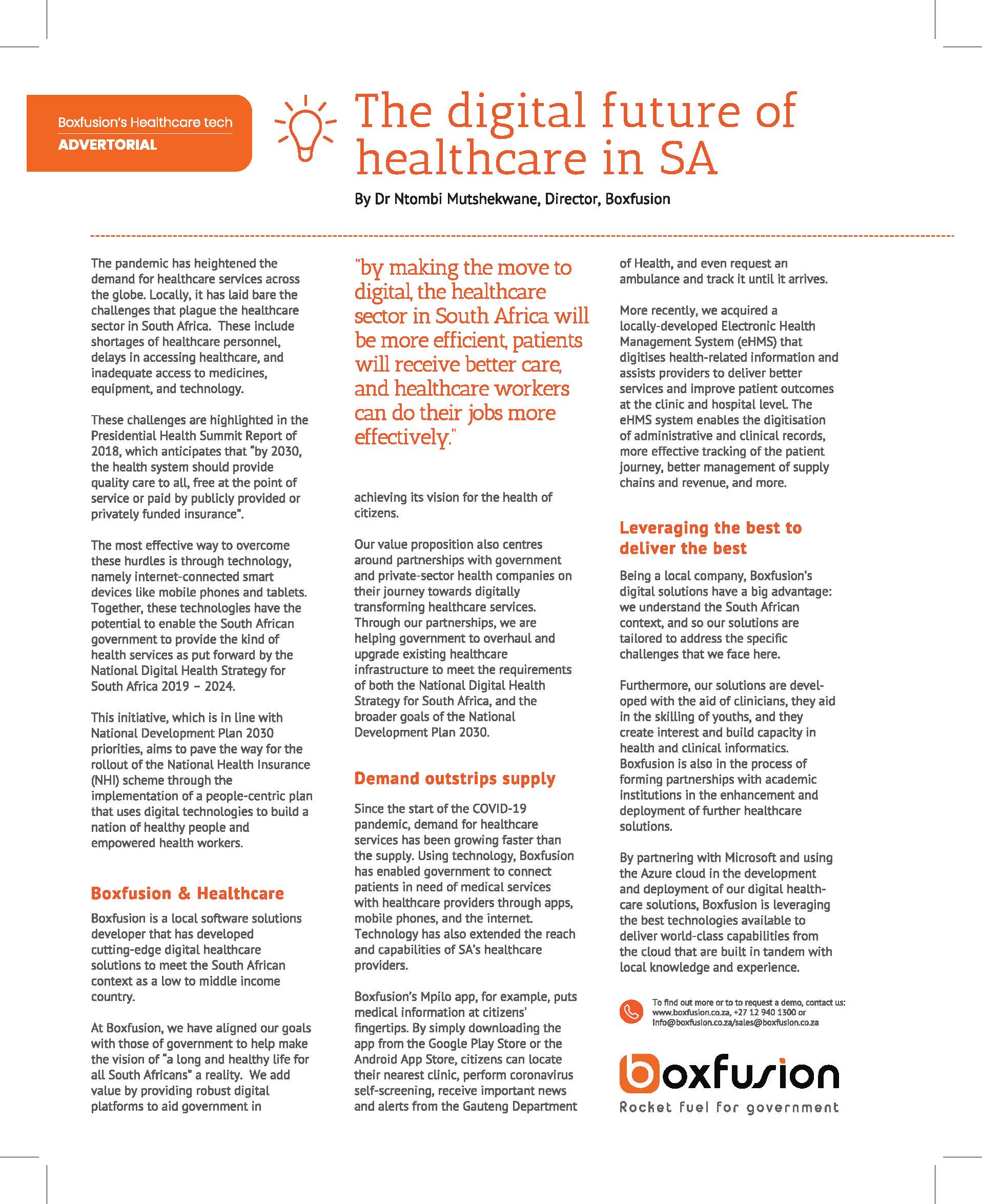 Boxfusion is one of our longest-running clients, and one of the clients for whom we have a set of monthly deliverables. Boxfusion is unique in that this SMME builds local software solutions specifically to assist with the digitisation of the public sector.